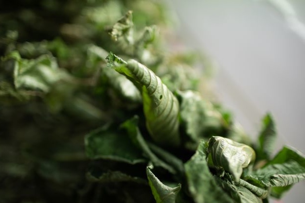 Na onze oogst in de lente, drogen we de bladeren in de droogruimte. Van deze gedroogde bladeren trekken we een extract op basis van water, wat we in onze zeep verwerken.